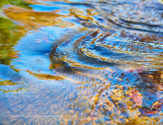 Karen explains what lead her to creating FLOW. “As a professional photographer there are times when walking in Nature is the best stress reducer. It is an activity I have enjoyed since childhood. Invariably much of the subject matter for my fine art photography is Nature based. I seem to have a kinship with water and its hypnotic qualities which are instantly soothing to me. I find the subtle nuances I see in the organic designs created by moving water mixing with the reflections of surrounding woodlands to be genius, possibly of higher intelligence. I was captivated by these designs and so began photographing them forming the FLOW collection over a period of years. In creating with water I found it incredibly healing.
